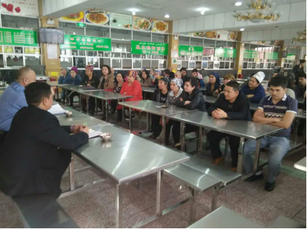 为了贯彻《新疆维吾尔自治区去极端化条例》,深入推进“去极端化”宣传工作,增强职工与宗教极端势力做斗争的信心和决心,自觉抵制宗教极端思想的渗透。4月20日下午,饮食服务二部在清真餐厅举办了一场“去极端化”宣讲会,饮食二部职工及商户人员70余人聆听了自治区访惠聚工作组驻新北社区组长、沙区检察院赛力克·艾力汗检察官的宣讲。