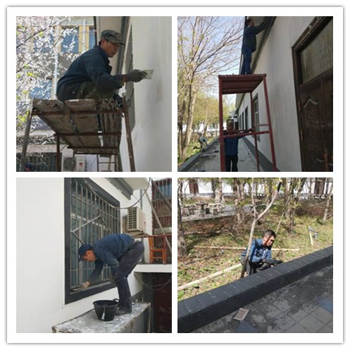 维修期间,校领导也多次亲临现场指导,给工人师傅们加油打气。4月27日,热力服务部完成了和园内树木的修剪、地砖铺设、墙面粉刷等修缮工作。职工们现已转战粉刷维修大学生心理咨询中心办公用房,将继续加油接着干,为校园环境建设贡献后勤力量。