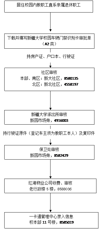 A1类:学校公务用车、在校内有房(含集资房、房改房、公租房、教师公寓)的本校教职工(含离退休人员、聘用职工)用车。持卡可在三校区各门通行。(新疆大学派出所、选培办、新疆大学社区等驻校单位及职工按学校正式单位及在编职工标准对待。)